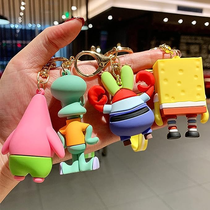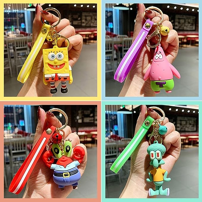 سلسلة مفاتيح شكل سبونج بوب و اصدقاء البحر مع حلقة مفاتيح متحركة هدية لطيفة