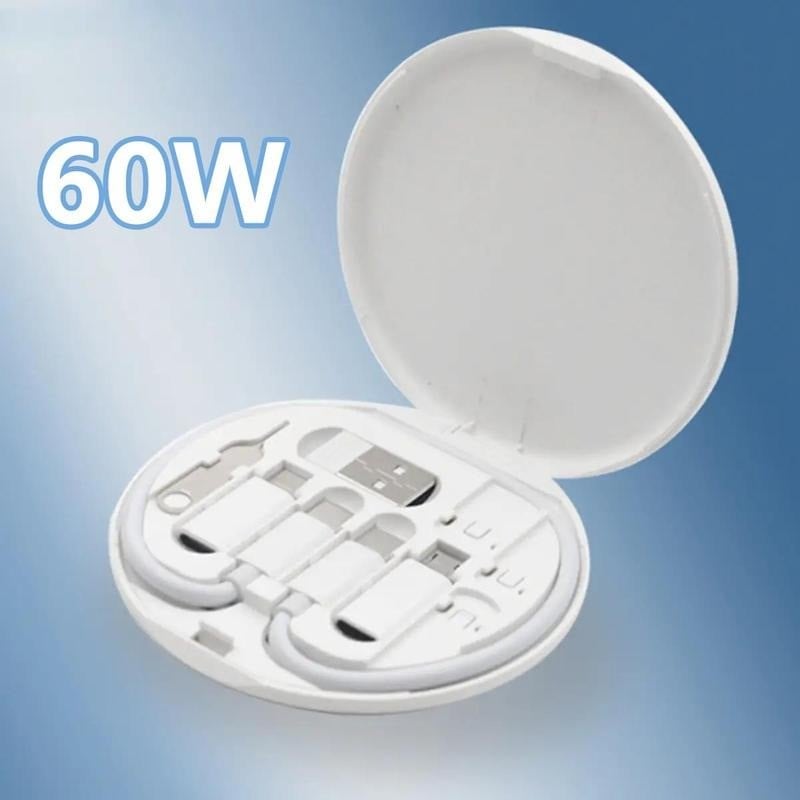 صندوق تخزيين كيبل ومحول USB، انواع متعددة للشحن، محول خطي ولايتنينج ونوع C، اداة لنقل المعلومات تحتوي على فتحات لشرائح الاتصال ودبوس الاخراج ويستخدم كحامل للجوال