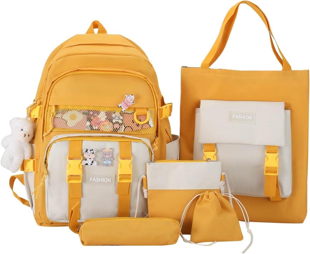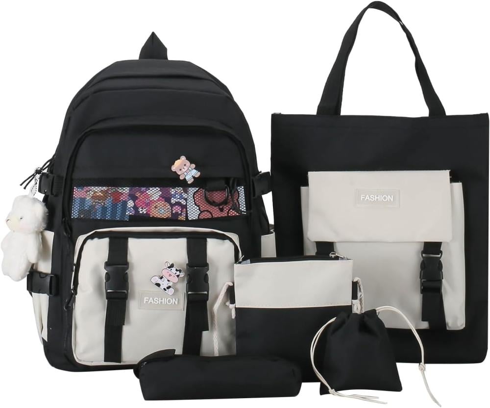 طقم شنط مدرسية 5 قطع – شنطة ظهر بطابع كرتوني أنيمي كيوت مع تنظيم عملي