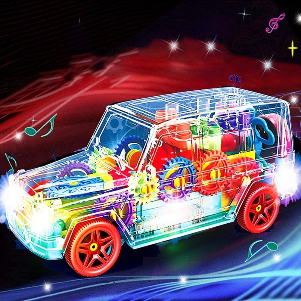 لعبة سيارة جيب الدوارة بالتصميم الشفاف ودوران 360 درجة مع موسيقا و أضواء ساحرة