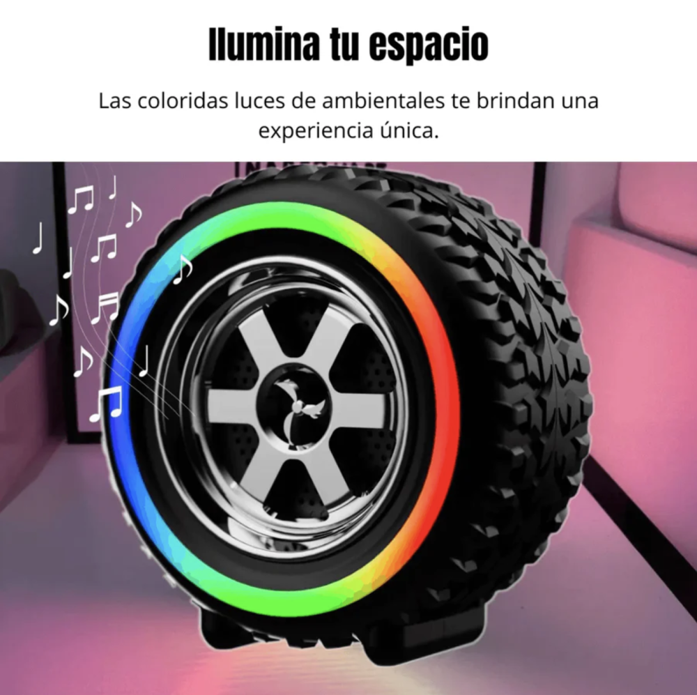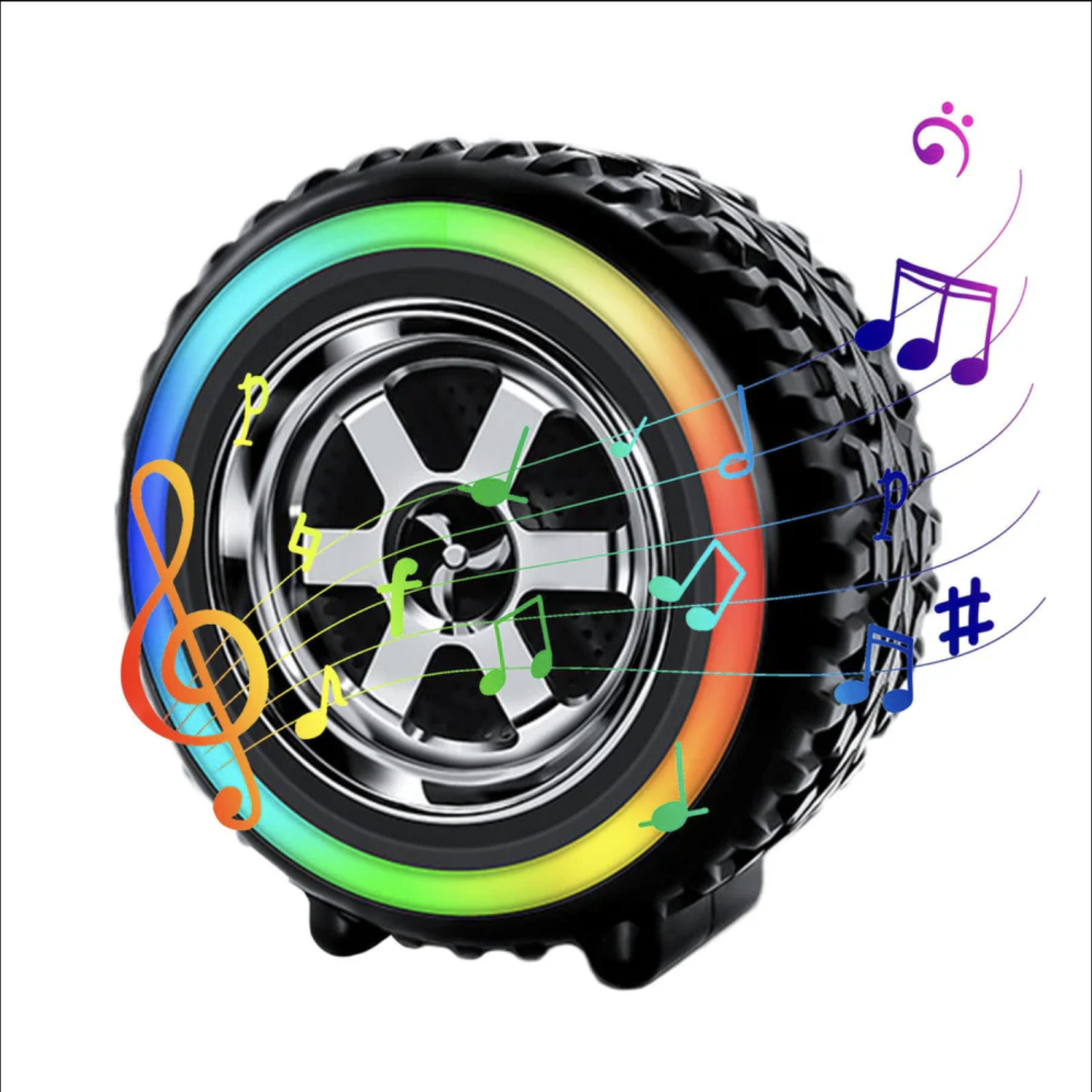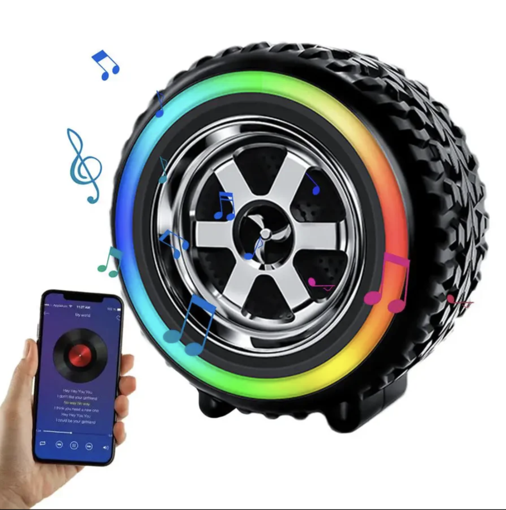 مكبر صوت سبيكر بلوتوث شكل دولاب سيارة مع اضاءة RGB ، صوت قوي ، اقتران ستيريو