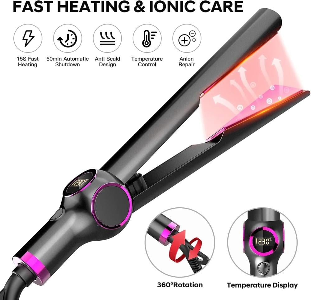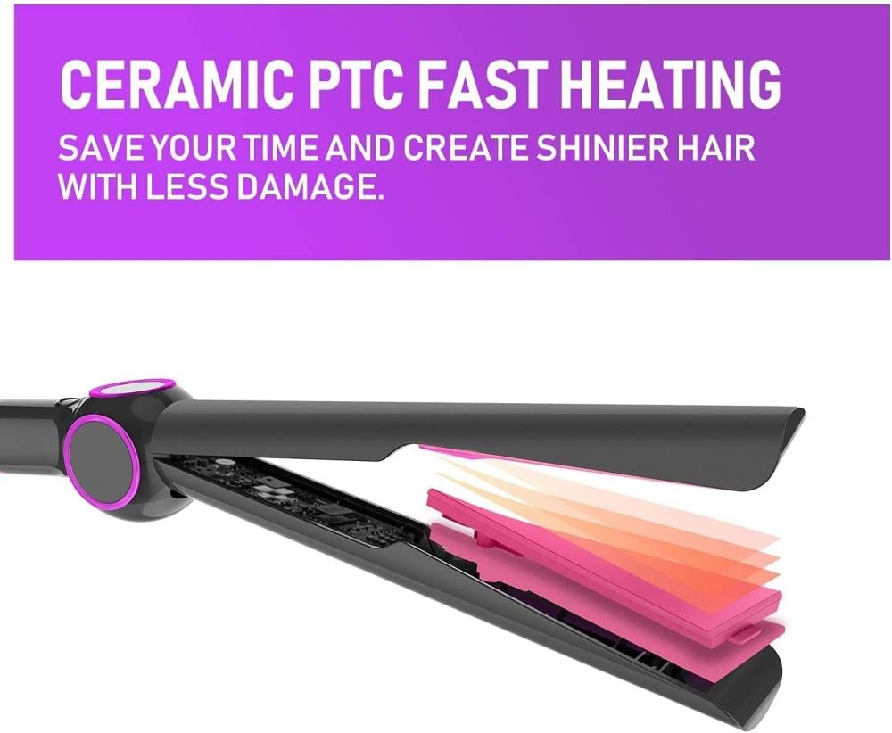 - شاشة LCD وسهلة الاستخدام: تحتوي المكواة على وظيفة الفتح بمفتاح واحد، مما يلغي الحاجة إلى عمليات تشغيل معقدة. شاشة LED تتيح لك تغيير درجة الحرارة في أي وقت. يوفر سخان PTC المتطور توزيعًا ثابتًا للحرارة مع وقت تسخين سريع، مما يساعدك في الحصول على شعر مذهل بسهولة.