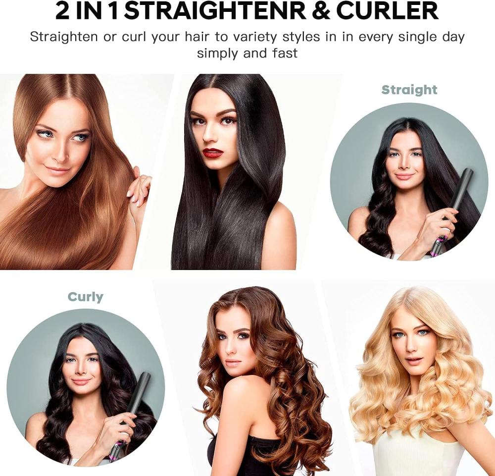 - مكواة فرد وتجعيد الشعر 2 في 1: تتميز اللوحة الملتوية الفريدة بإمكانية تجعيد الشعر وتمليسه. السيراميك والتيتانيوم يوفران تسخينًا سريعًا ومتساويًا وانزلاقًا سلسًا أثناء التصفيف، مما يجعلها مثالية للنساء الأنيقات. ستحصلين على تجعيدات ساحرة باستخدام هذه المكواة.
