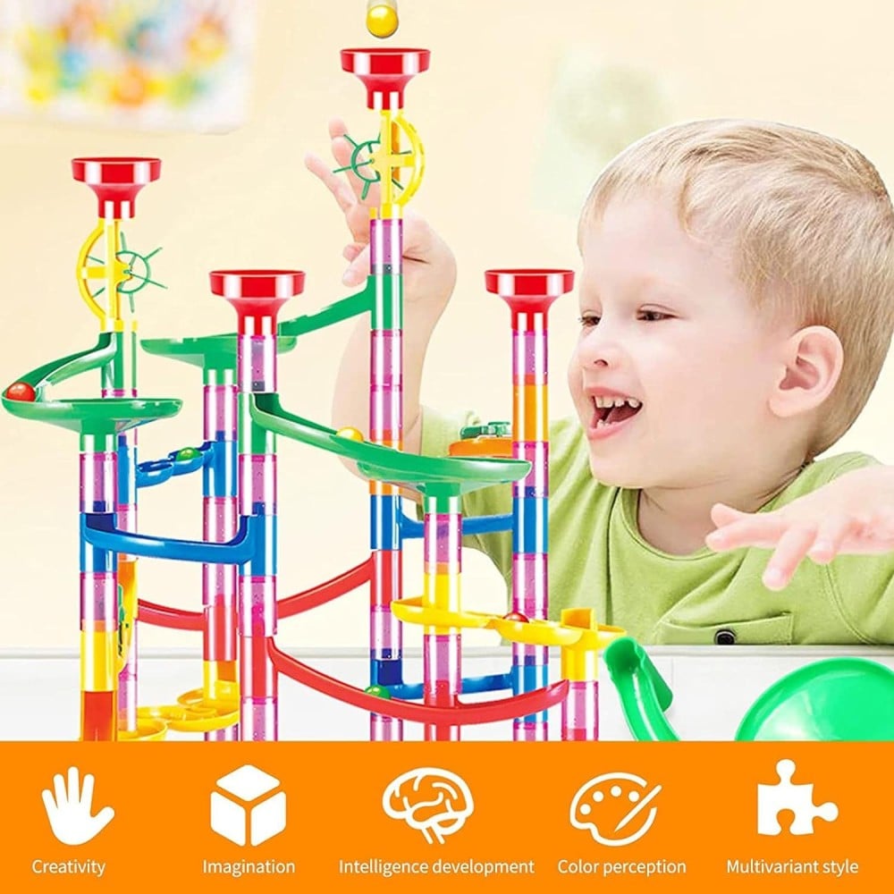 - Interesting Marble Run: Interesting marble run building block toys with cool parts! And it can teach children logic,innovative games, basic physics, fine motor, and problem-solving skills.
